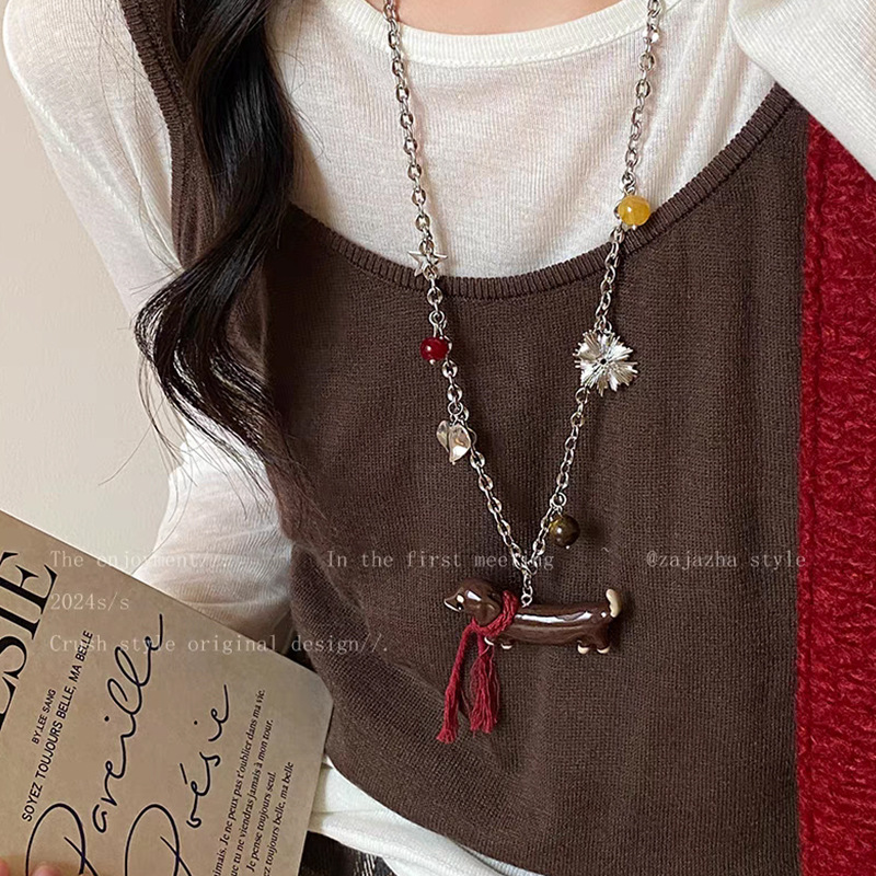 レトロな漫画ソーセージ犬流蘇ペンダントネックレス大衆デザイン洗練されたins風ファッション