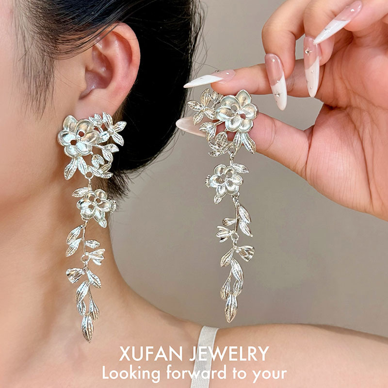 銀色の誇張した長い花のフリンジのイヤリングの女性の高級感の耳のイヤリングの2025の新型の重工業の気質のイヤリング