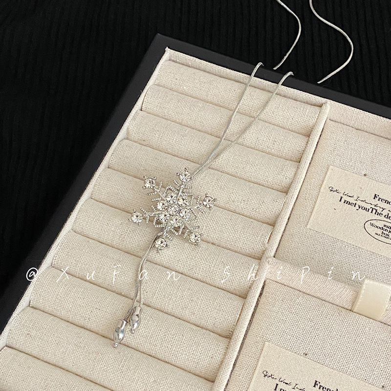 韓国系の冷たい風に雪の花のフリンジネックレスを入れています。