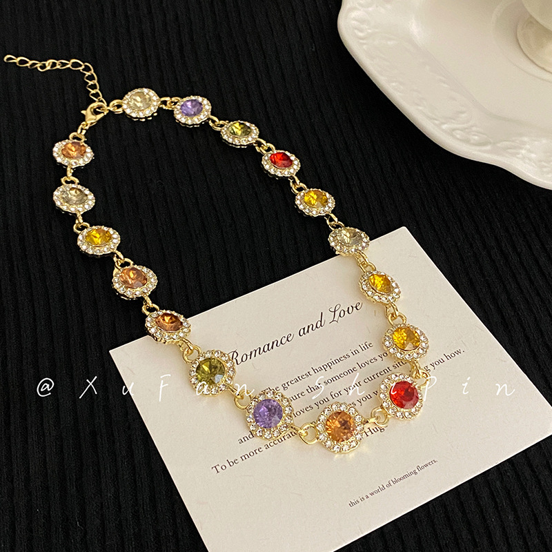 欧米の超きらきらとした丸い形のダイヤモンドの鎖のレトロな宮廷風の気質の個性の小さい大衆の軽豪華なネックレスの女性