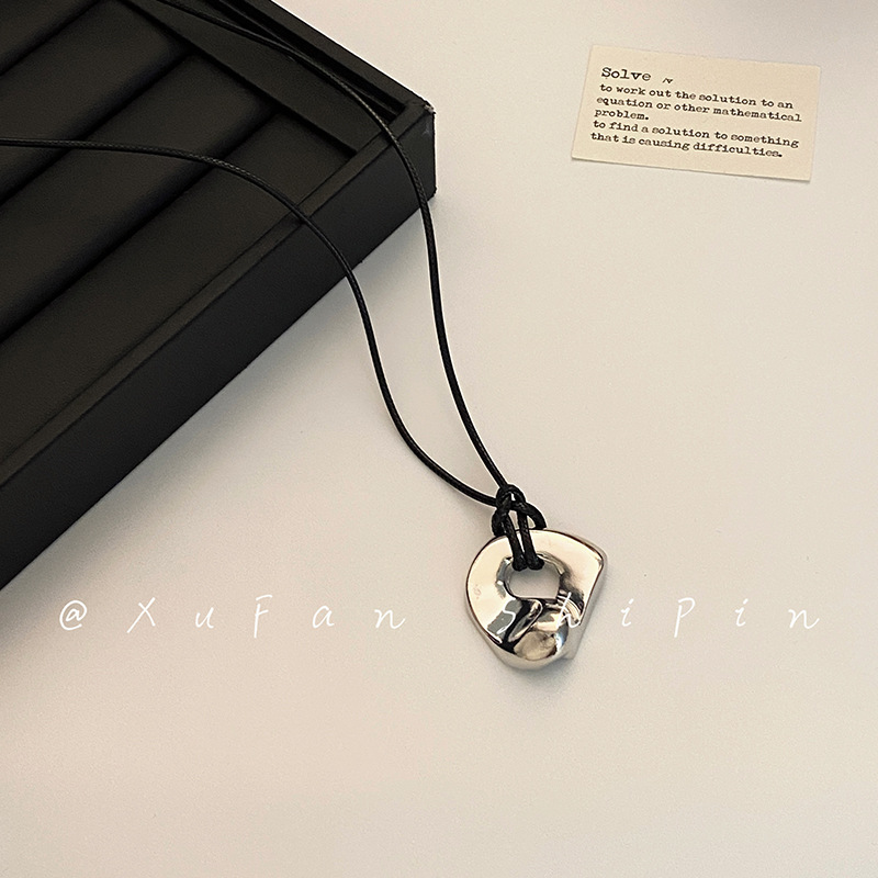 韓国東大門シンプル黒縄透かし彫りの花のネックレス