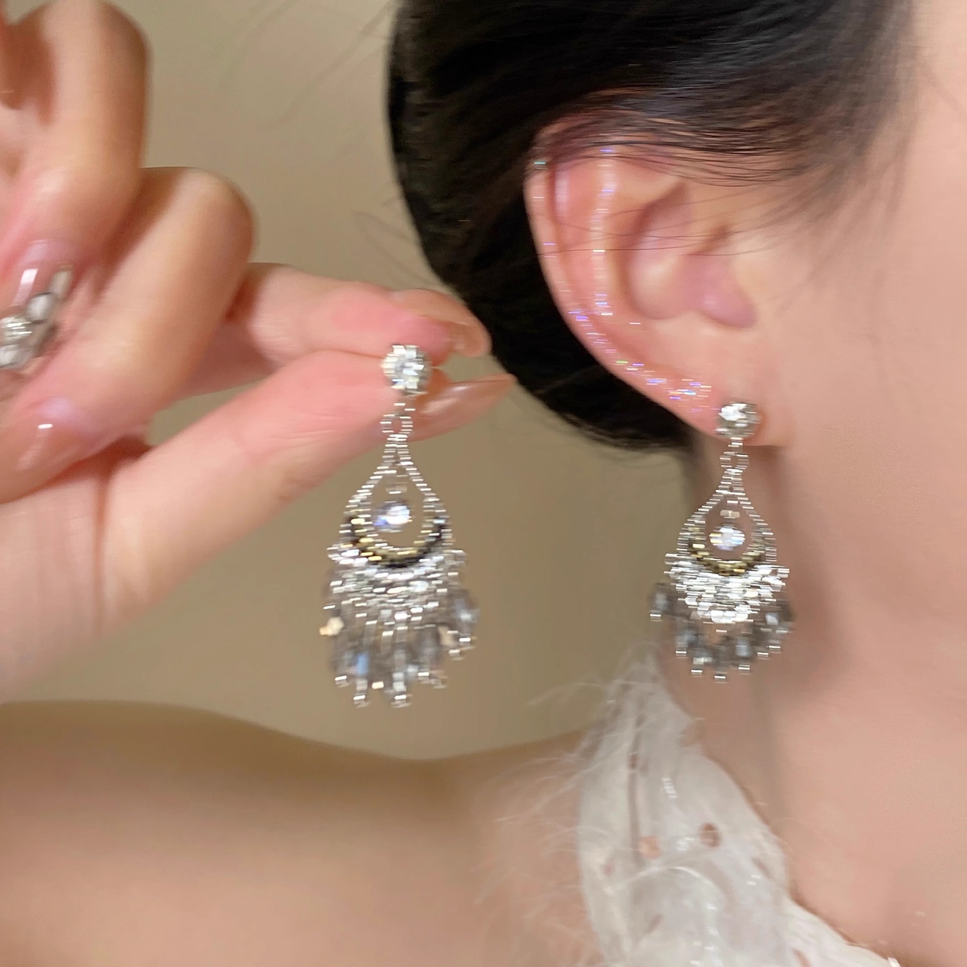 「Gesang Blossom」レトロエスニックスタイル模造クリスタルタッセルイヤリングマイクロダイヤモンドがちりばめられたニッチファッションライトラグジュアリーイヤリング