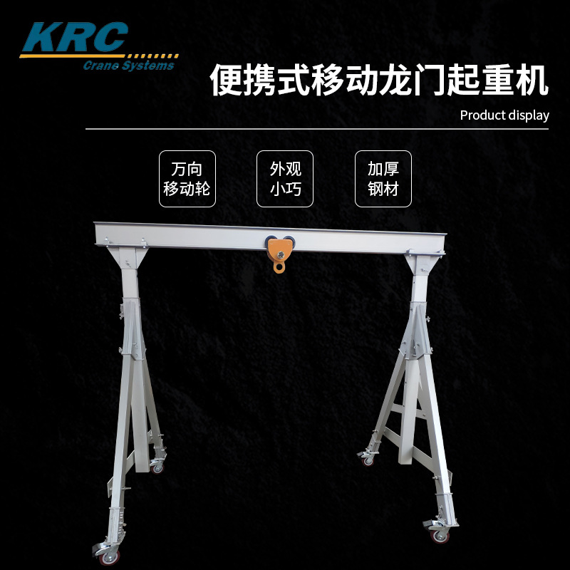 小型ポータブル昇降伸縮無軌道電動簡易手押し門架アルミ合金移動龍門吊