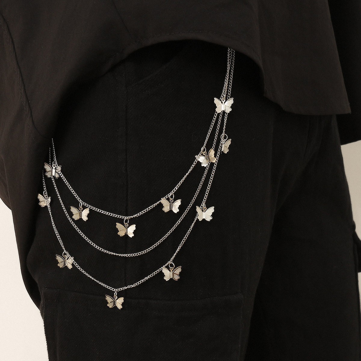 クロスボーダーの長いタイプの新型の潮流の個性の金属の蝶は多くズボンのチェーンの腰のチェーンの女性の多層の腰のチェーンの体のチェーンを使います。