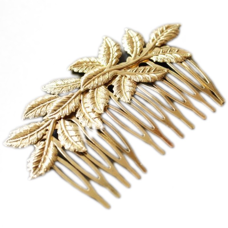 ネットの爆発的なファッションアクセサリーの金属の質感の木の葉の髪は櫛を挿して欧米の流行のファッションの木の葉の髪を挿します。