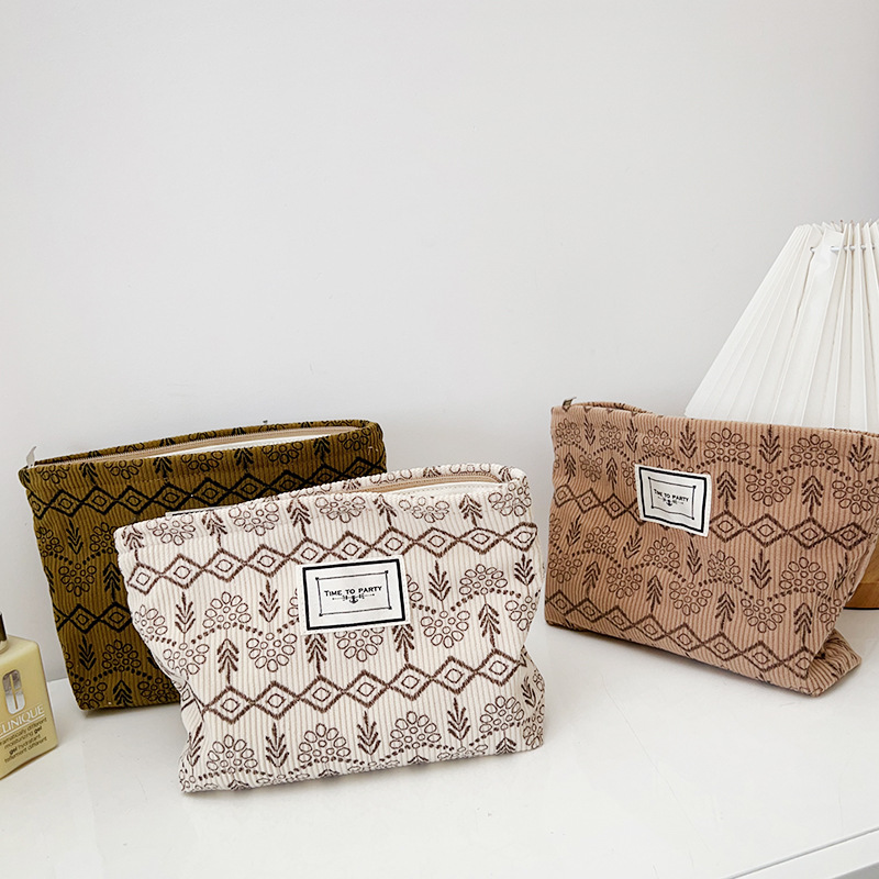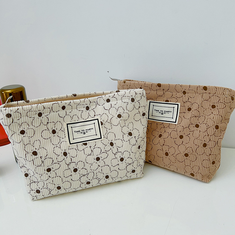 新品コーデュロイ化粧品バッグハンドバッグ花柄洗面バッグ家庭用旅行インスタ风収纳バッグ