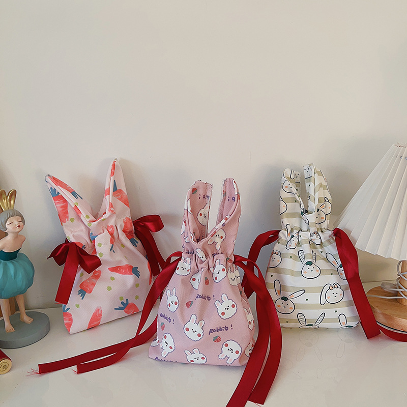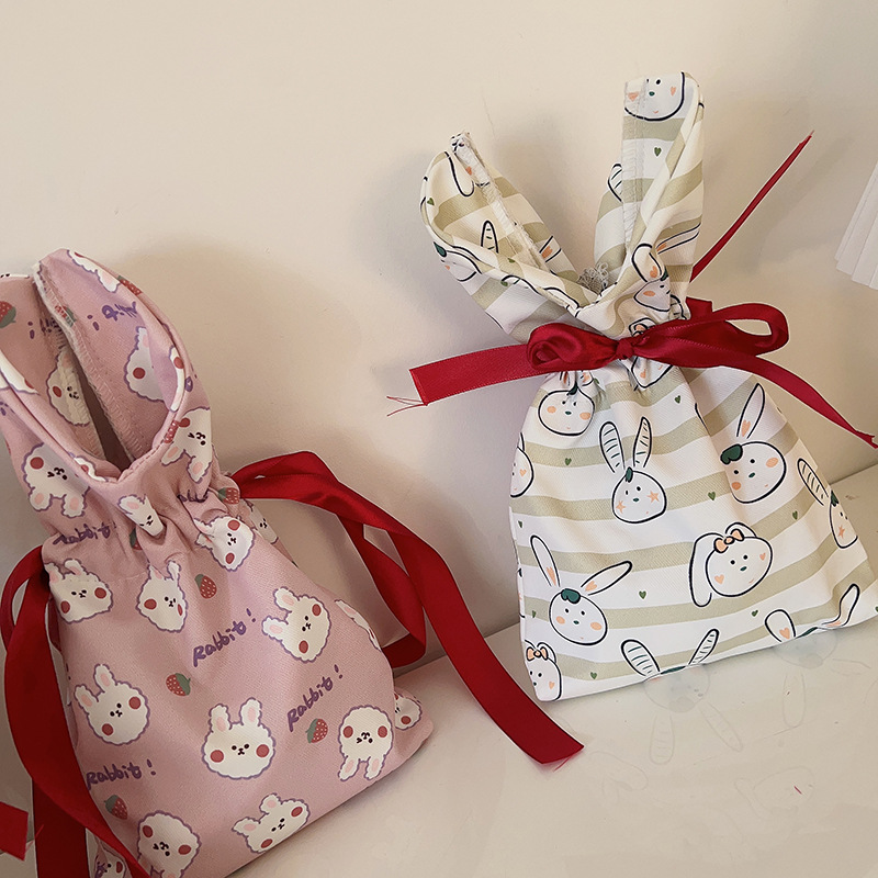 かわいい漫画のひもの束口の贈り物の包装の収納袋の小さいウサギの手は小銭のカードを持って卸売りを包みます。
