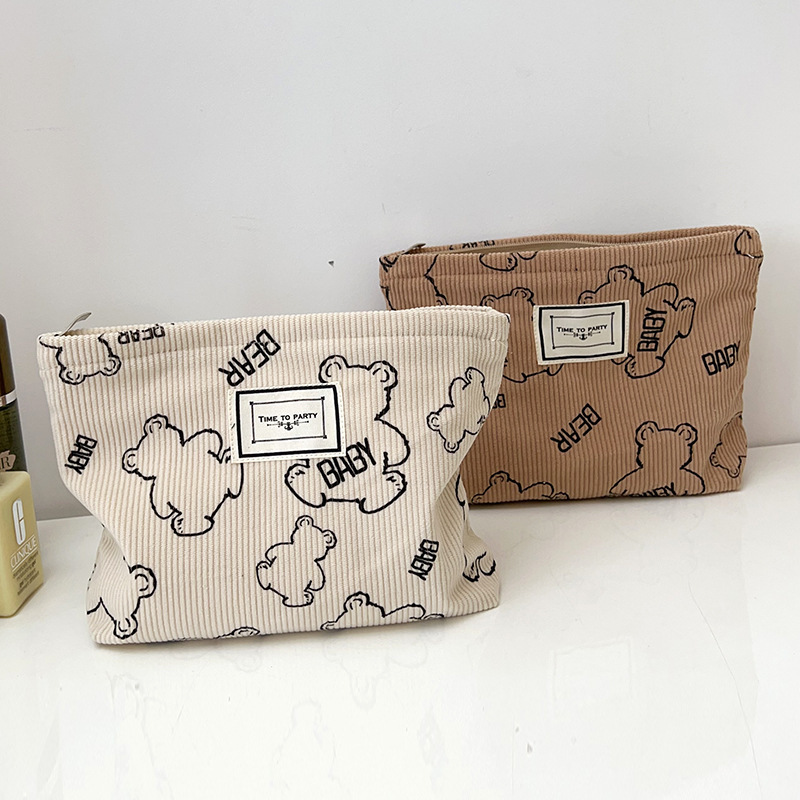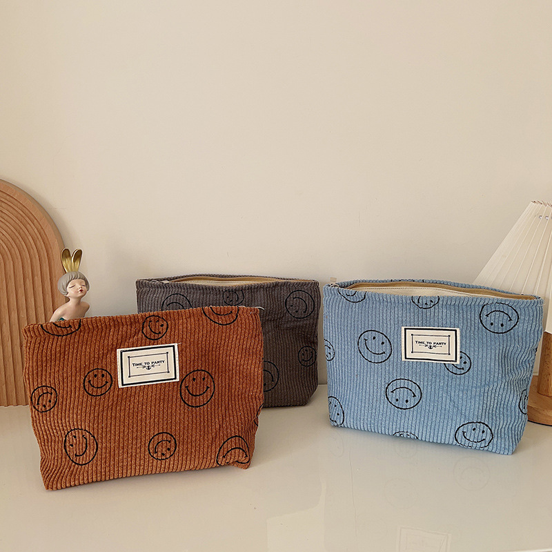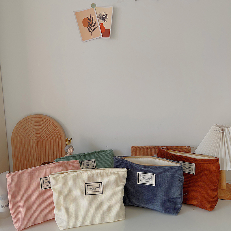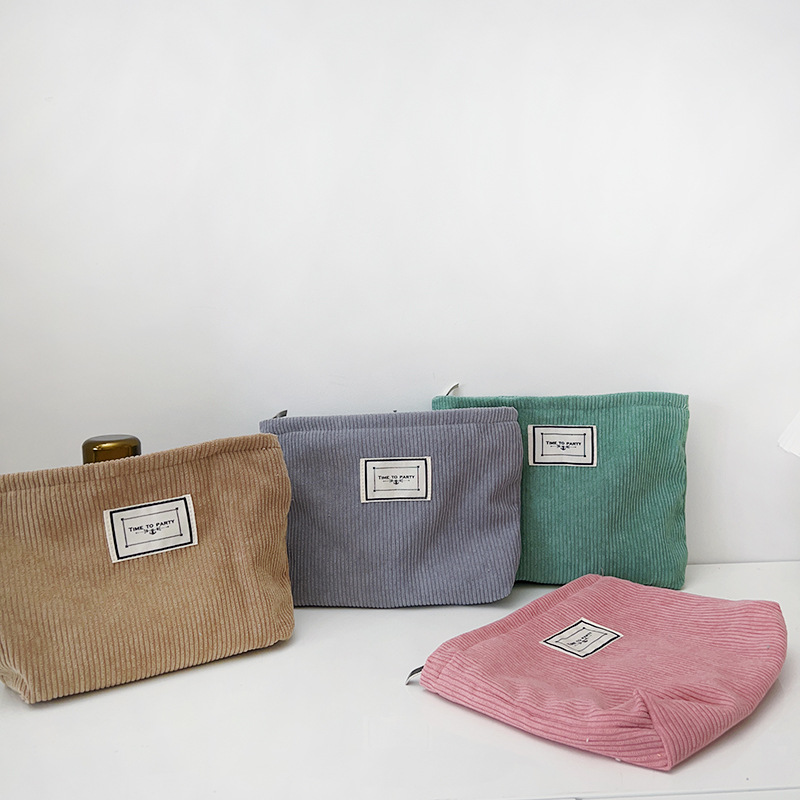 コーデュロイ小清新大容量キャンバス化粧バッグ携帯純色収納シンプル化粧品ハンドバッグ卸売り