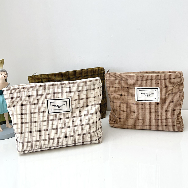 レトロ純色コーデュロイ化粧バッグ高颜値内胆バッグ携帯大容量小銭収納バッグ化粧バッグバッグ