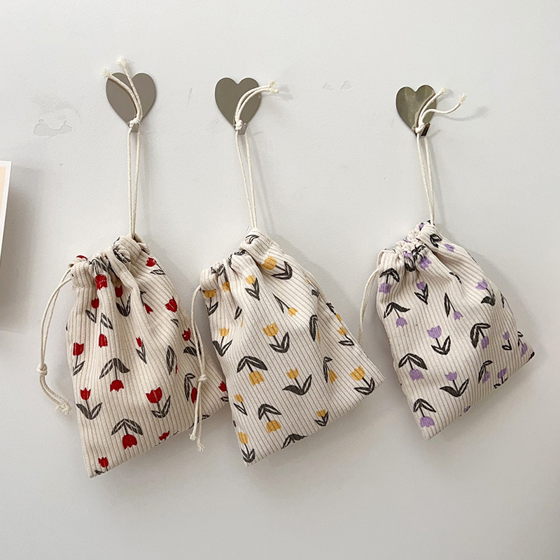 コーデュロイミニ布袋巾着口紅化粧品旅行携帯収納袋女の子キー小銭入れ