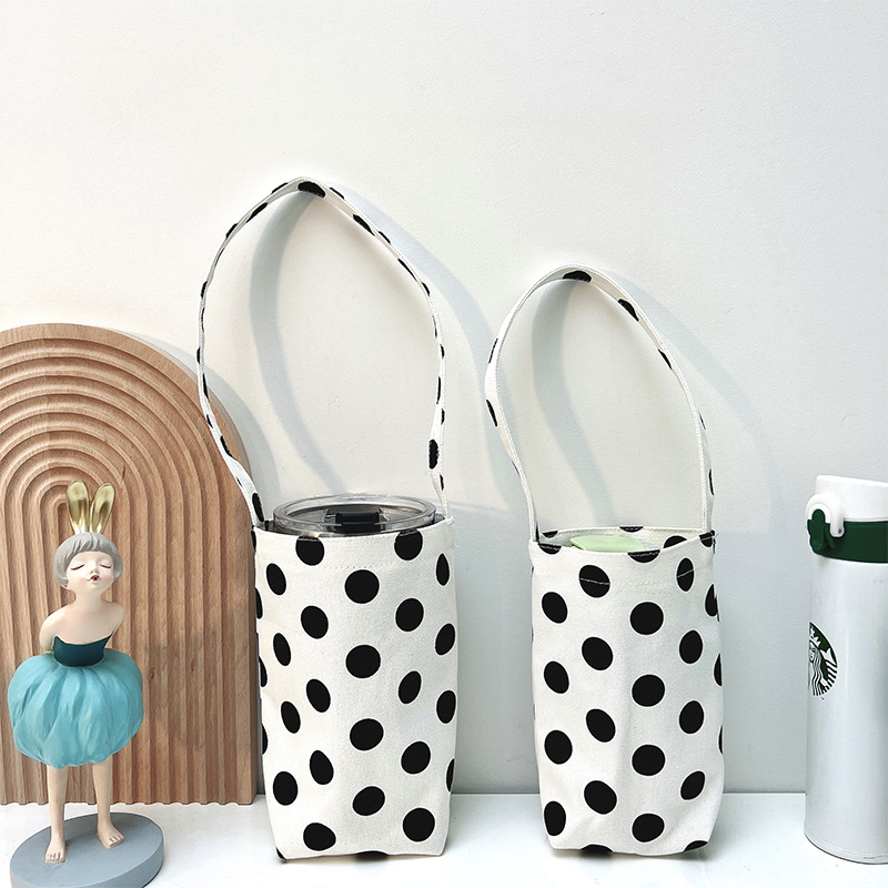 創意的な斑点の水のコップのカバーの旅行の携帯用のコップの手提げのコップの保護カバーのキャンバスの個性の手は飲み物の手を持ってカバンを持ちます。