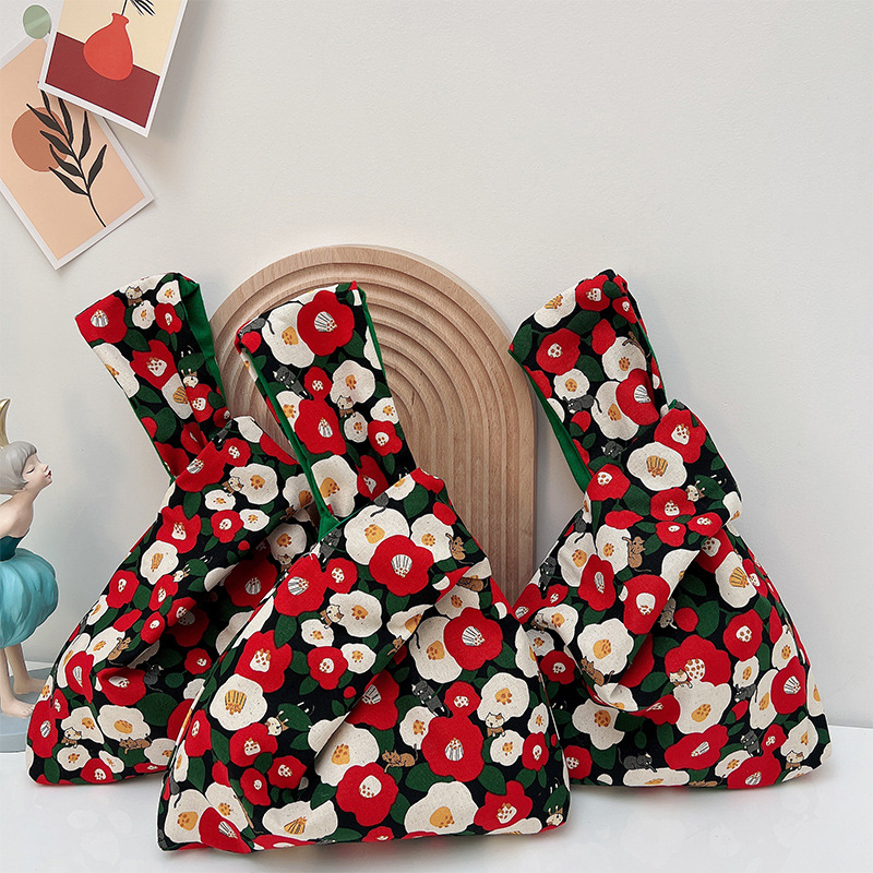 日本の学生は手首を結って復古風の大きい花の綿布をかぶせて手提げます。