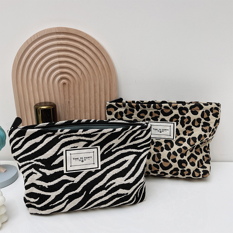 夏気质ジャカードヒョウ柄シマウマ柄パターン小众高级感大容量ポータブルポーチ収纳袋