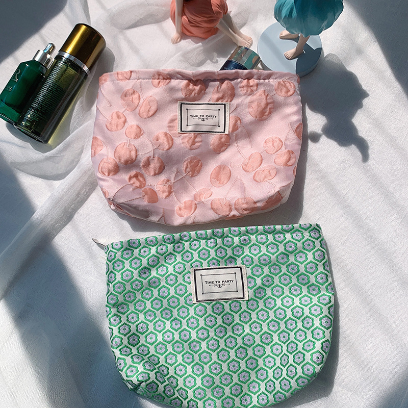 ジャカードレディース化粧ポーチグリーンピンクおしゃれハンドバッグレディース化粧ポーチ洗面バッグ布袋収納四季折々可