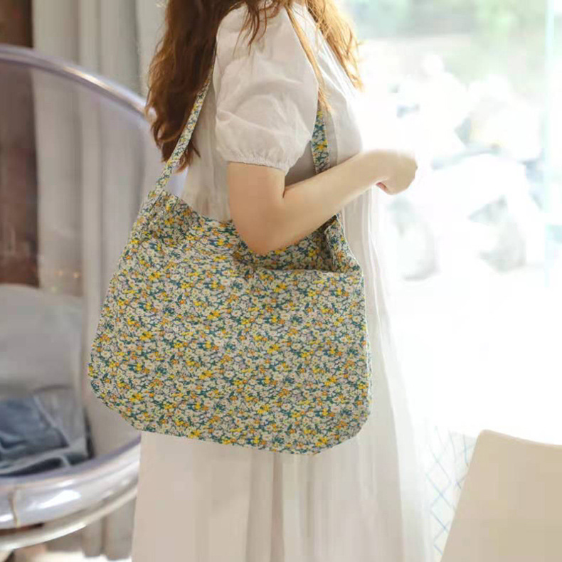 森系シングル女性バッグ斜め掛け花ズックバッグコーデュロイ大容量ショッピングバッグ学生カバンクロスクロスボーダー