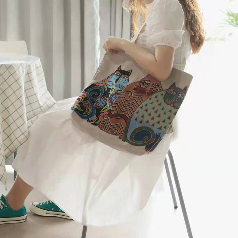 民族風バッグ大容量ショルダーバッグ女性大布バッグかわいいニャスター学生布芸バッグ女性