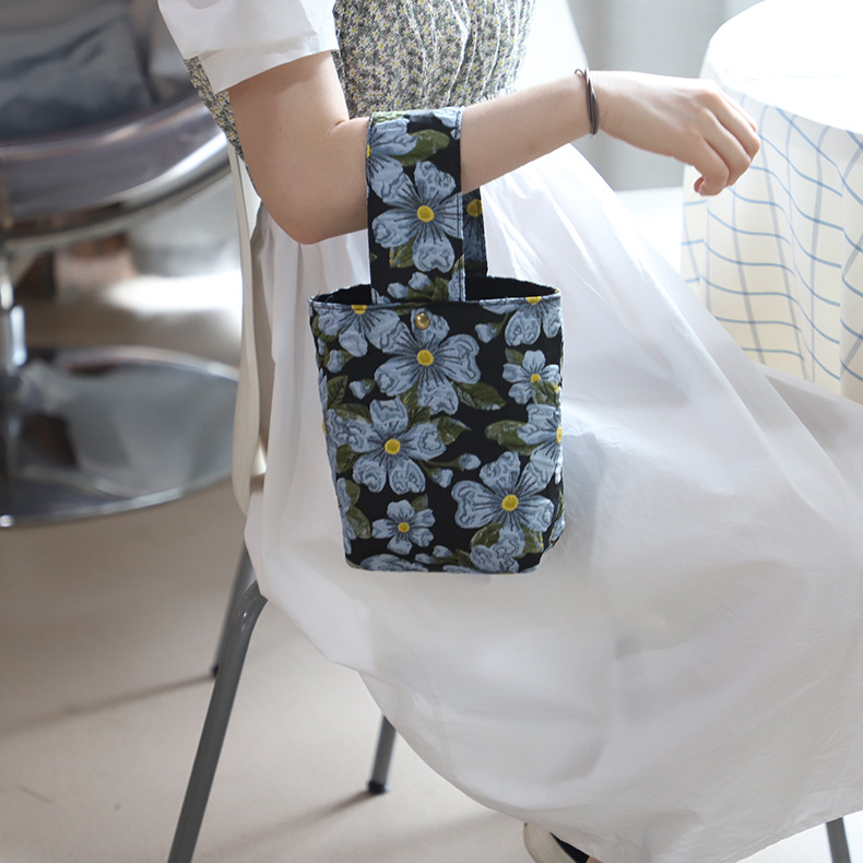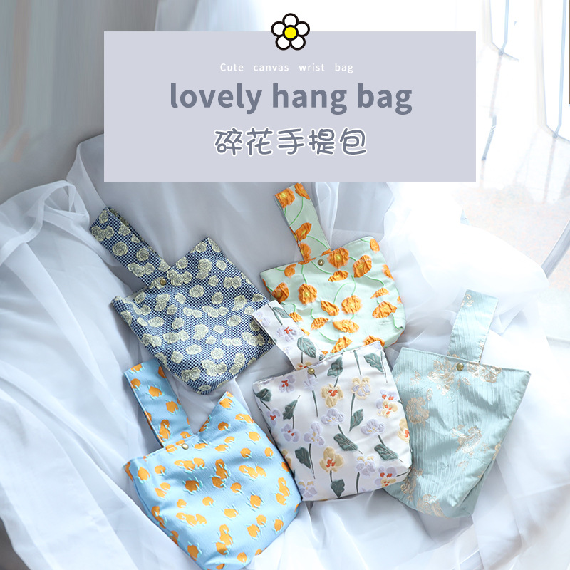 卸売り少女春夏復古花バッグ女性新ブルージャカード手バッグ四角い布バッグ