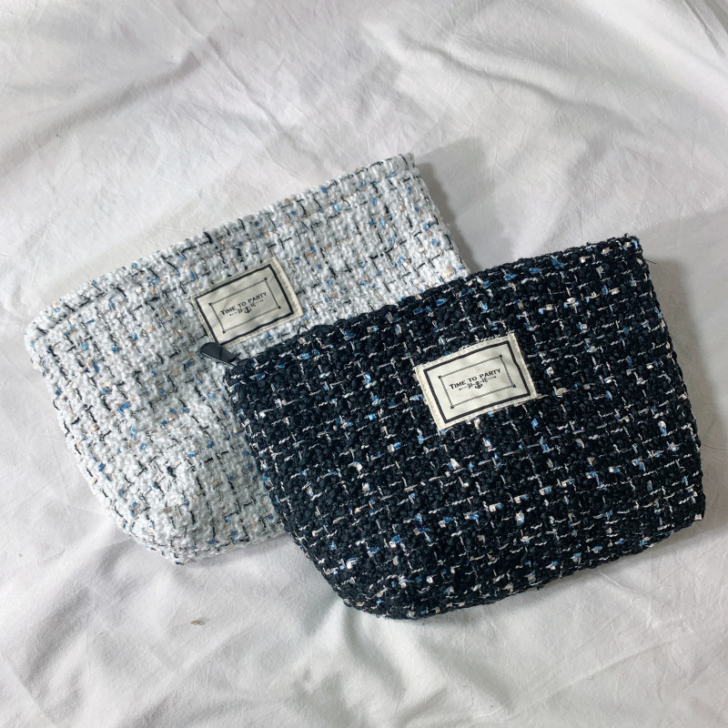 小香風気質化粧バッグ白黒ハンドバッグバッグ女性布バッグ優雅ファッション収納バッグ