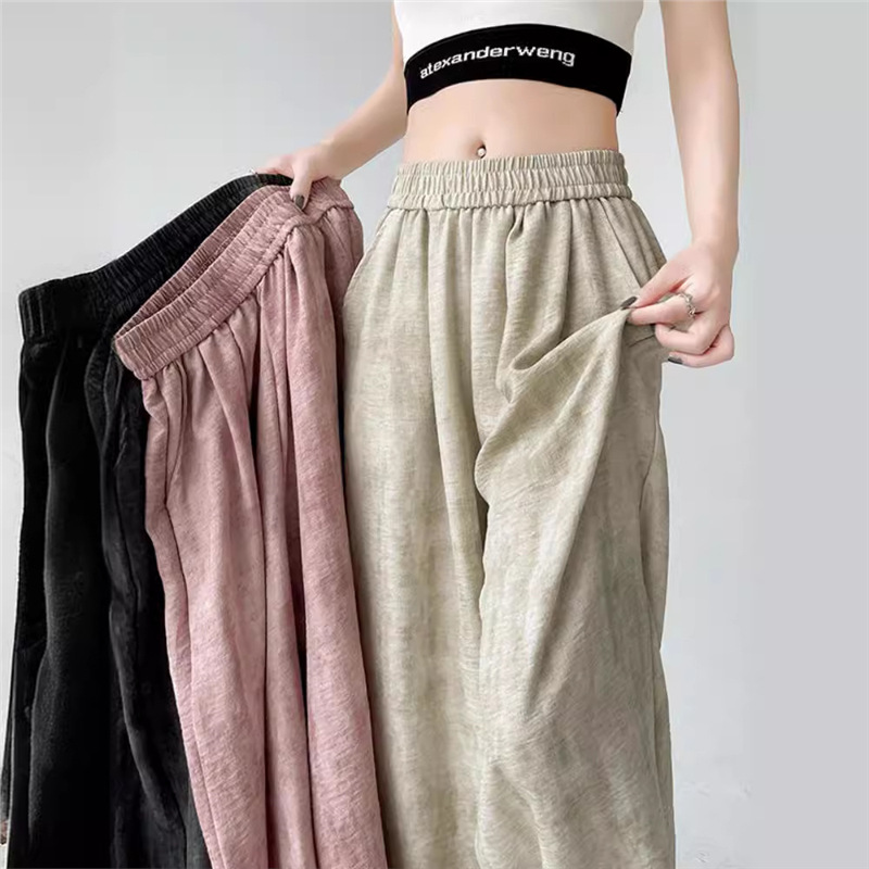 2025夏の新型は色の柔らかい糸のズボンの女性の広い足のアメリカの曲がった刀のゆったりしている感じが現れます。