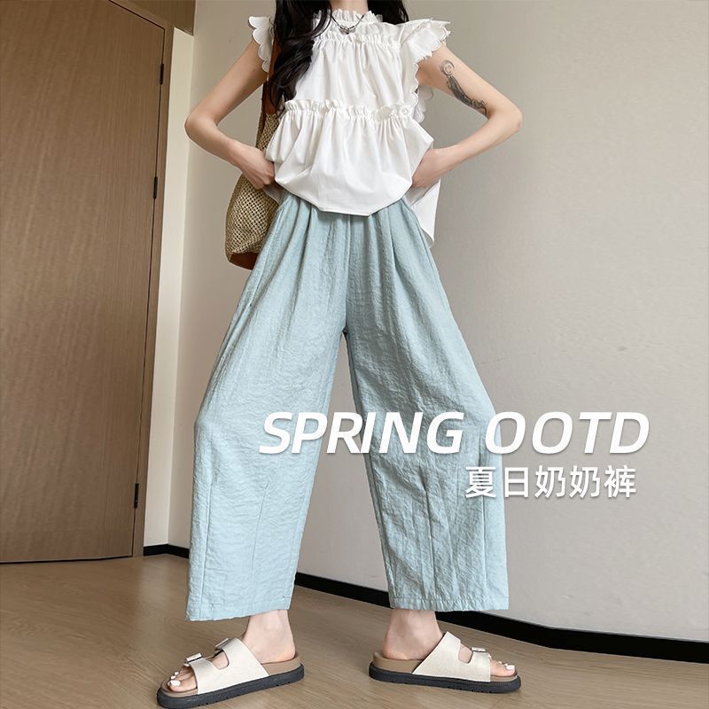 氷糸の小柄なダイコンのズボンの女性の夏の2025新型のハロンの9分のズボンの日系のまっすぐな筒の酢酸のおばあさんのズボン