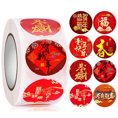 卸売り500貼り/巻/1インチ新年おめでとう旧正月吉祥祝福貼り装飾ステッカーラベル
