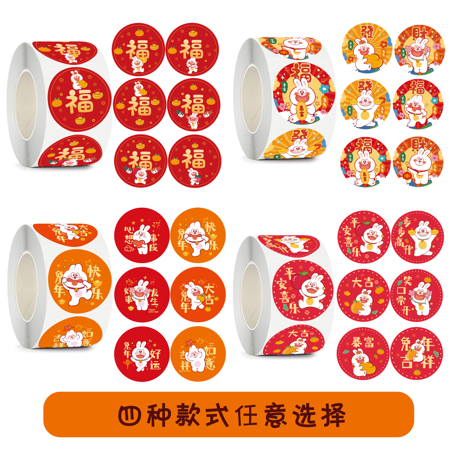 卸売り500貼り/巻/1インチ新年おめでとう旧正月吉祥祝福貼り装飾ステッカーラベル
