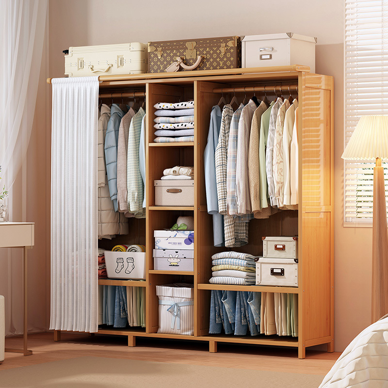 卸売シンプルなワードローブレンタルハウス防塵経済的な強力で耐久性のある吊り下げワードローブ寝室用カーテン付き大容量