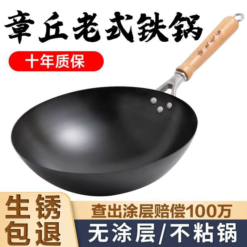 鉄鍋の公式旗艦手作りの伝統的な炒め物の木は黒鍋をコーティングしていません。