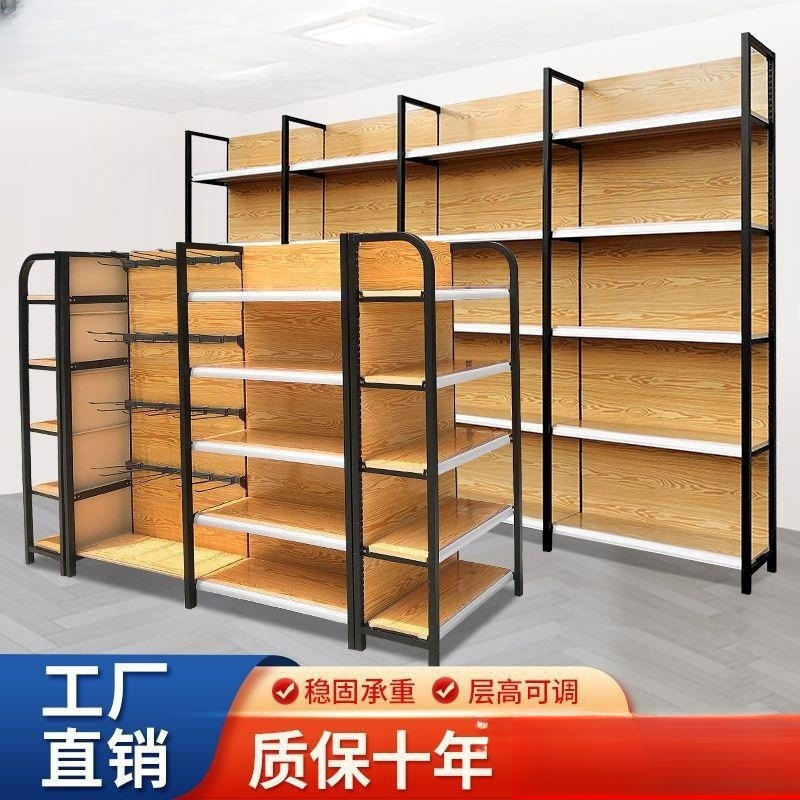 棚多層コンビニ陳列棚文具店スナック母子コンテナ4柱木目調収納ラック