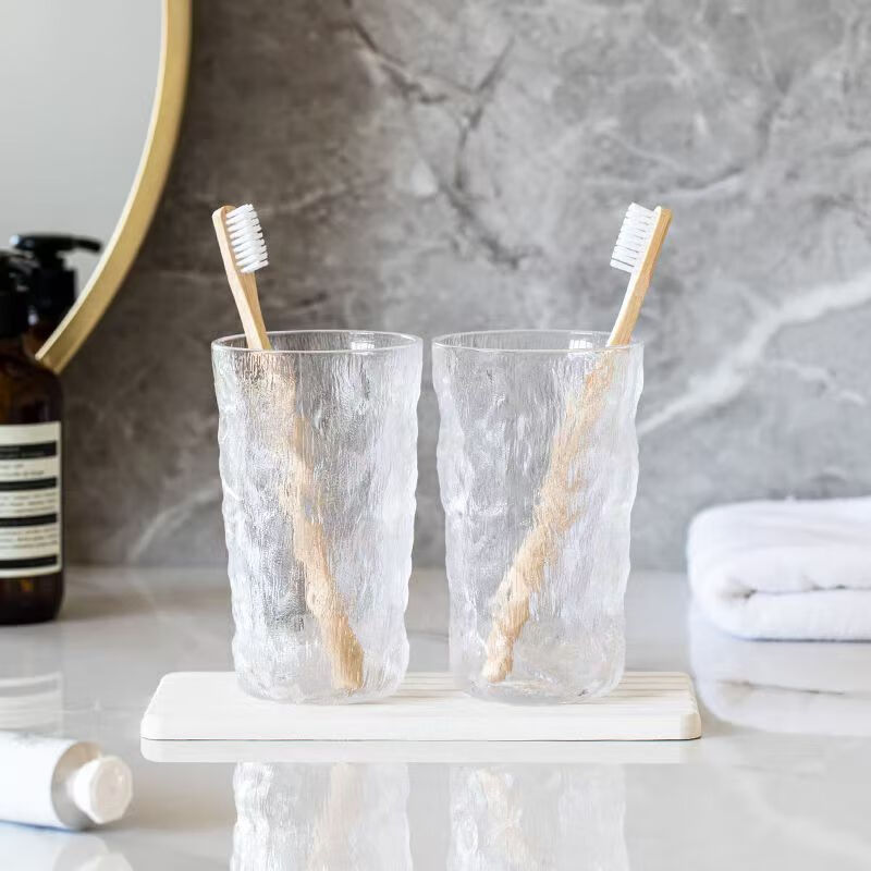 杯子玻璃杯冰川纹漱口杯透明牙刷杯轻奢家用水波纹洗漱ins风杯子
