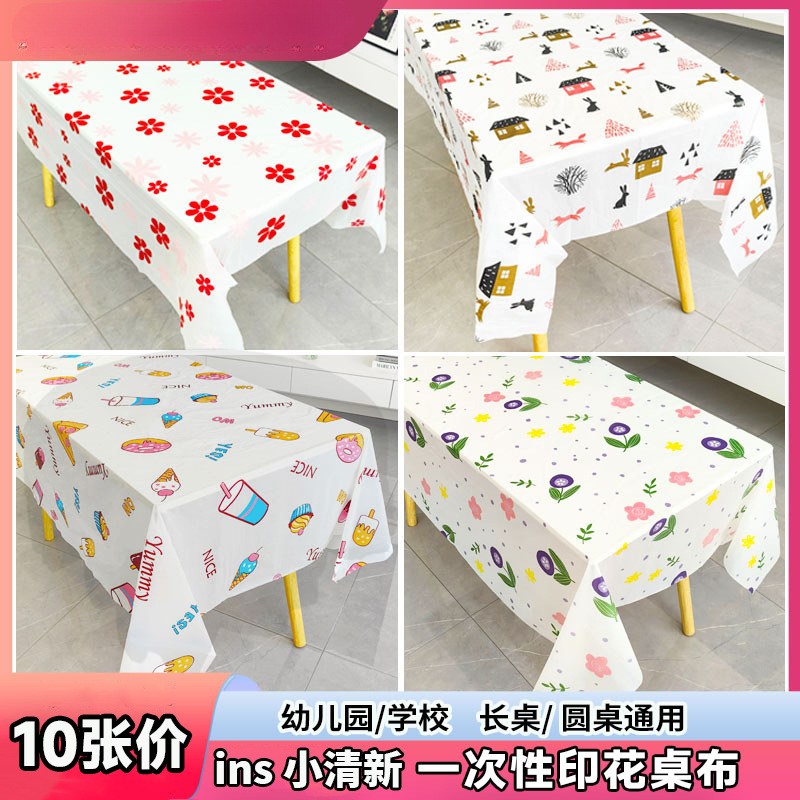 使い捨てテーブルクロス10枚、甘くてかわいい長方形の幼稚園学校の子供の日のテーブルレイアウトパーティーテーブルクロス