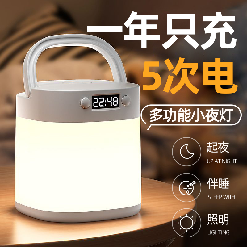 2025 新しいリモコン充電式ナイトライト時計ベッドサイドランプ寝室睡眠赤ちゃん授乳ソフト目の保護テーブルランプ