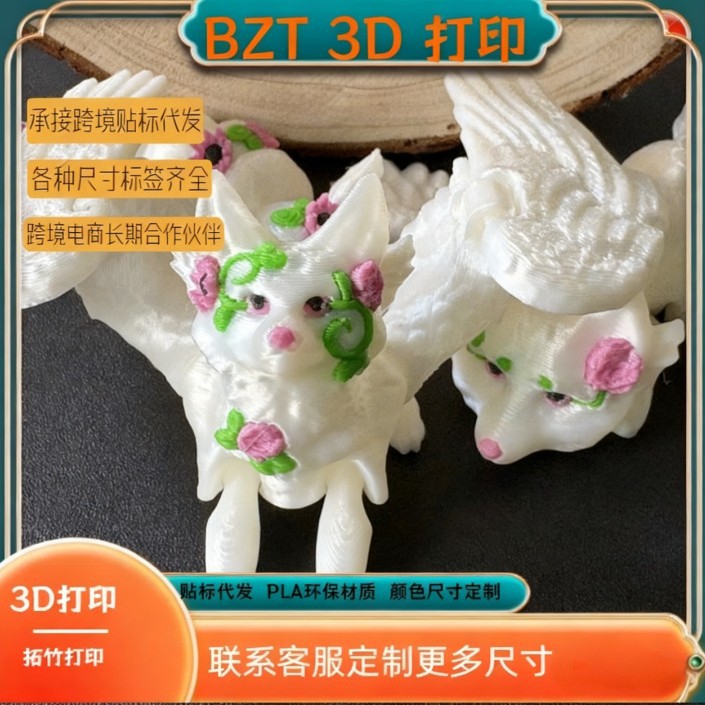 3Dプリントによる多色エルフキツネ、関節可動式、子供のおもちゃモデル、家の装飾品