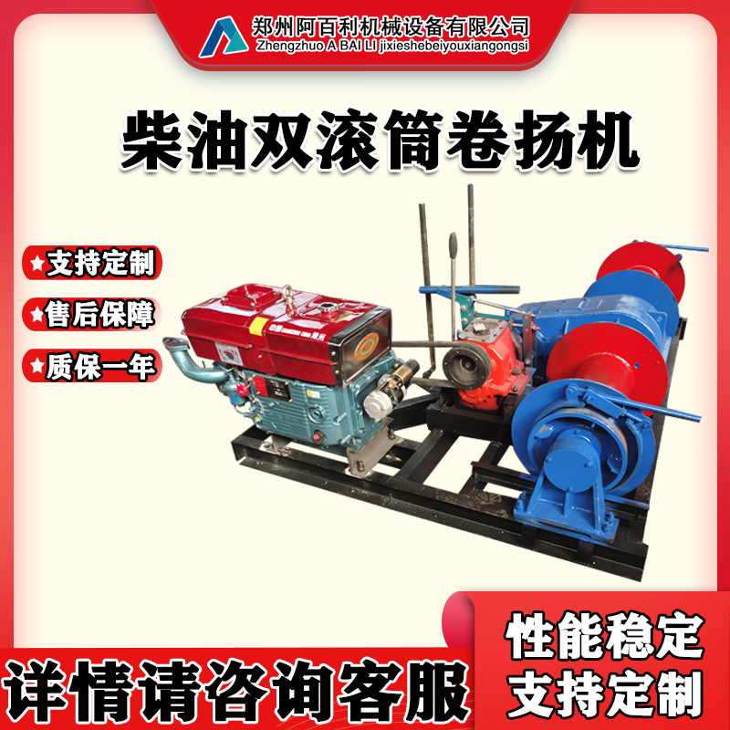 新型油圧ブレーキディーゼル二重ドラム巻上機1-20T山区木を引っ張る重型双方向巻上機
