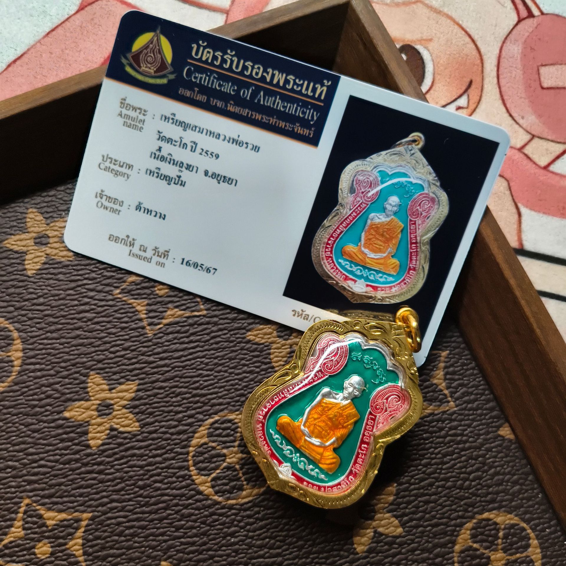 タイブランドのロンポルルイ2559年シェマ、カード付き、タイ仏教ペンダント