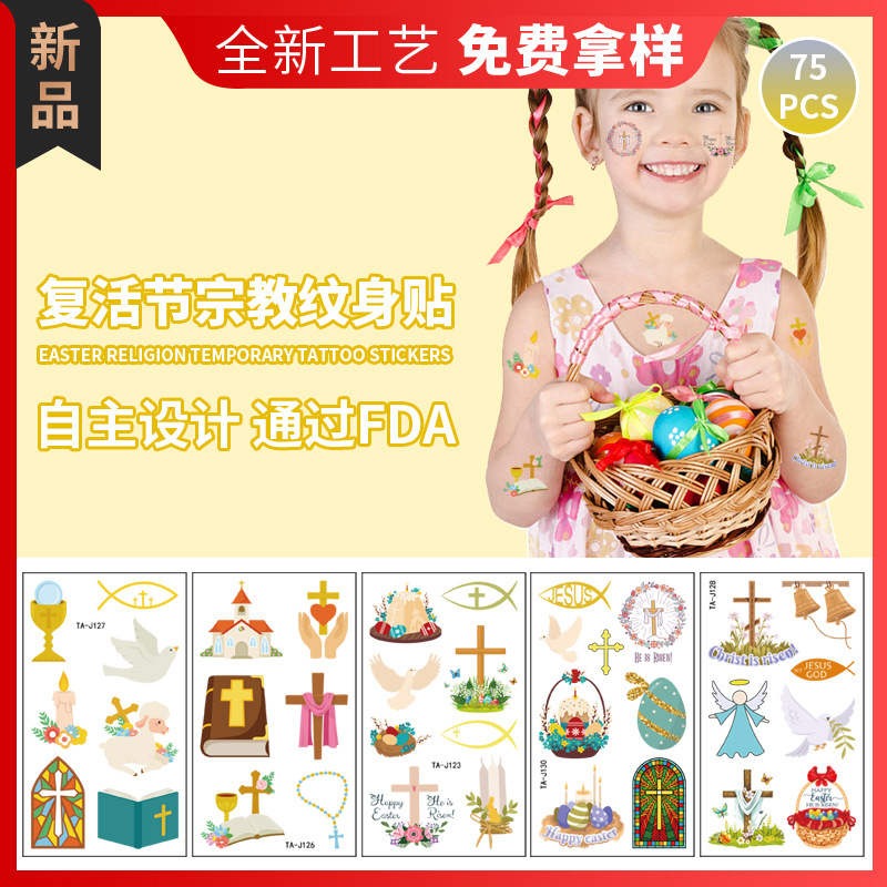 国境を越えた新しいイースターの紋章は現物の宗教の十字架の祝日のパーティーのウサギの卵の全身のステッカーを貼ります。