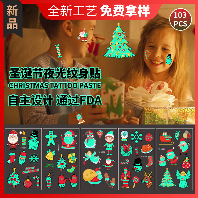 新型夜光クリスマス刺青防水汗子供漫画顔ヘラジカ使い捨て臨時文体シール