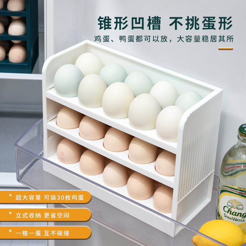 卵棚に卵を入れて冷蔵庫に入れて、サイドドアの卵箱に卵を入れて、卵を落としないようにして、台所を支えます