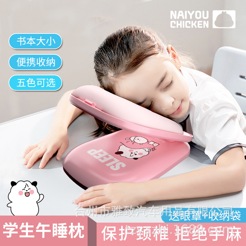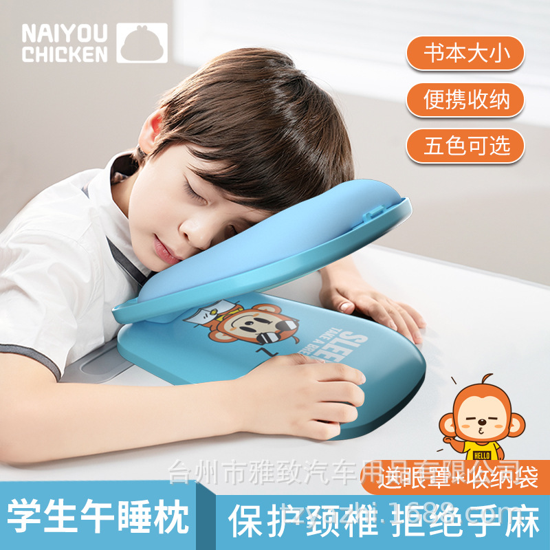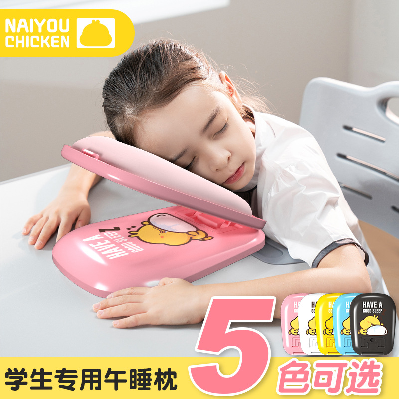 子供の昼寝枕のテーブルの上に腹ばいになって寝て枕の神器の小中学生が腹ばいになって寝て枕のサラリーマンの事務室の昼寝枕を交換します。