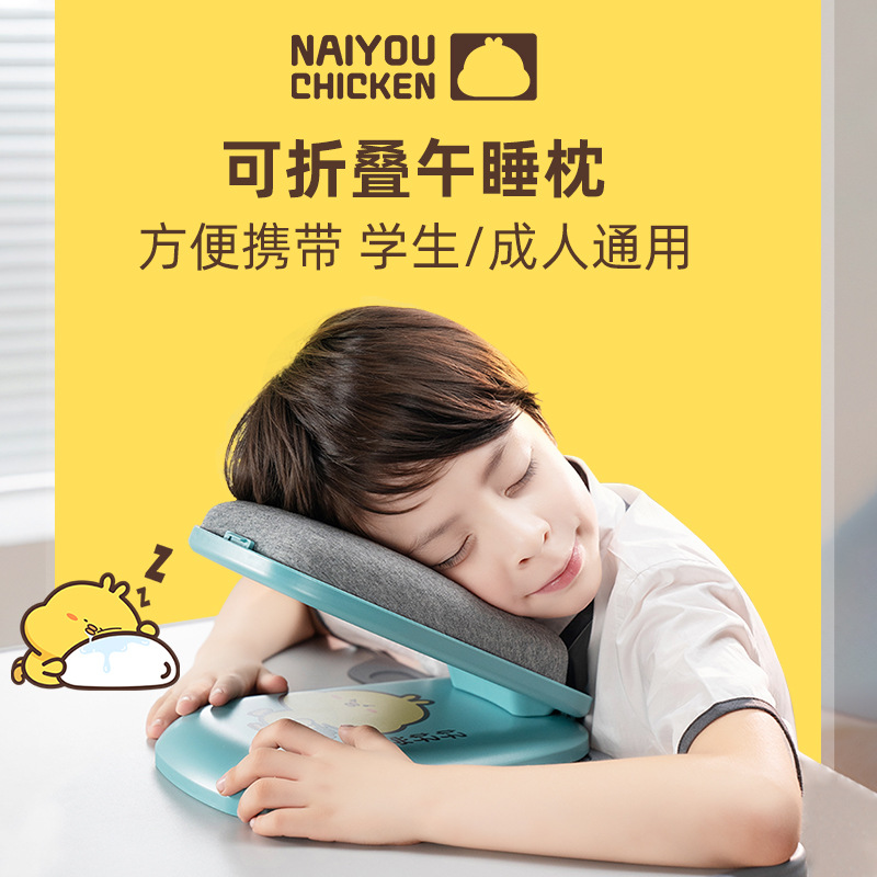 新型小中学生昼寝枕の机の上に腹ばいになって寝枕の神器の子供が腹ばいになってサラリーマンのオフィスの昼寝枕を枕にします。