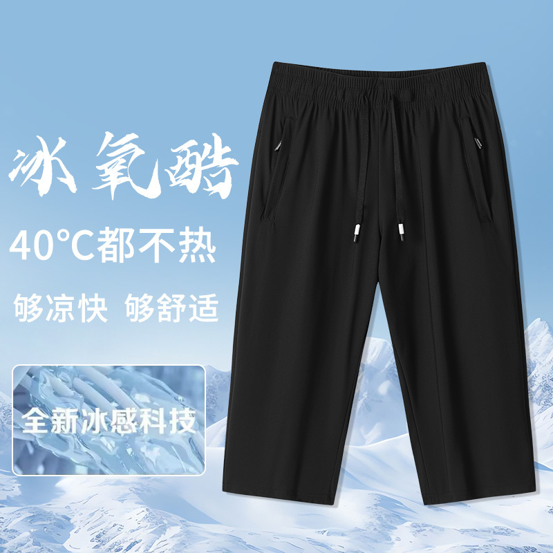 【メーカー直販】夏の新型アイスパンツM-7XL男性ファッションカジュアルスポーツ大サイズ男性七分ズボン