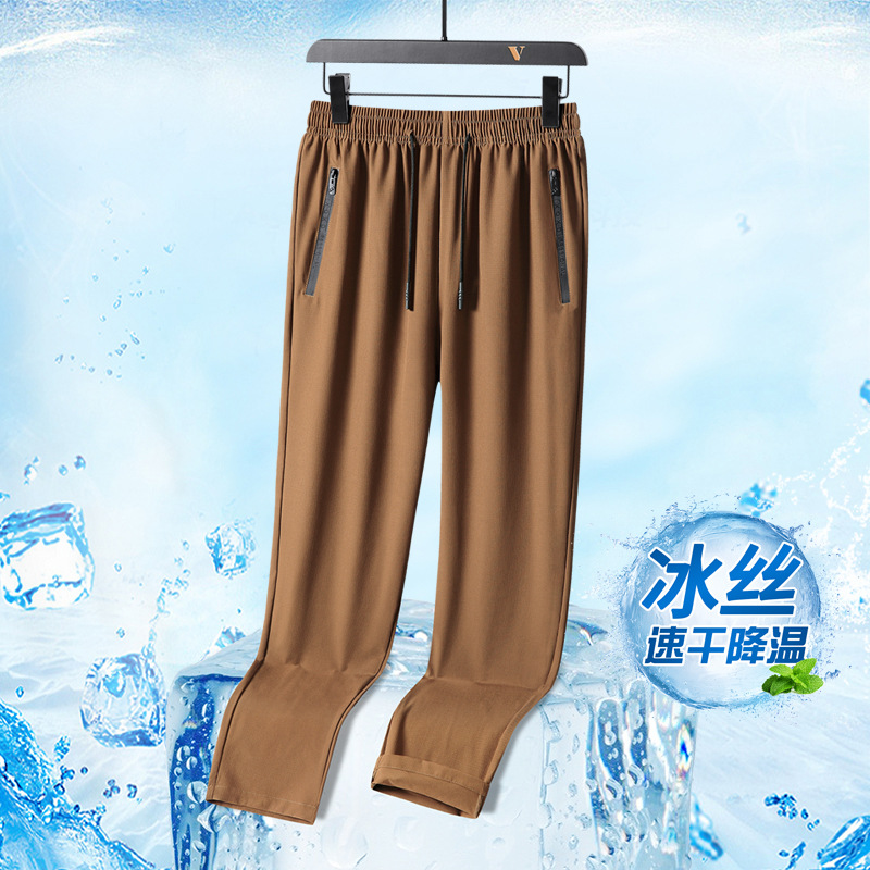 スポーツパンツ男性用夏の薄手速乾氷糸ズボンゆるいストレートカジュアルパンツ夏男性エアコンパンツ