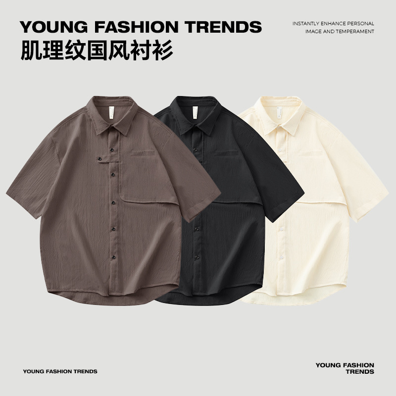 夏の新型青少年港風流行ファッションブランドの薄いタイプの半袖シャツ