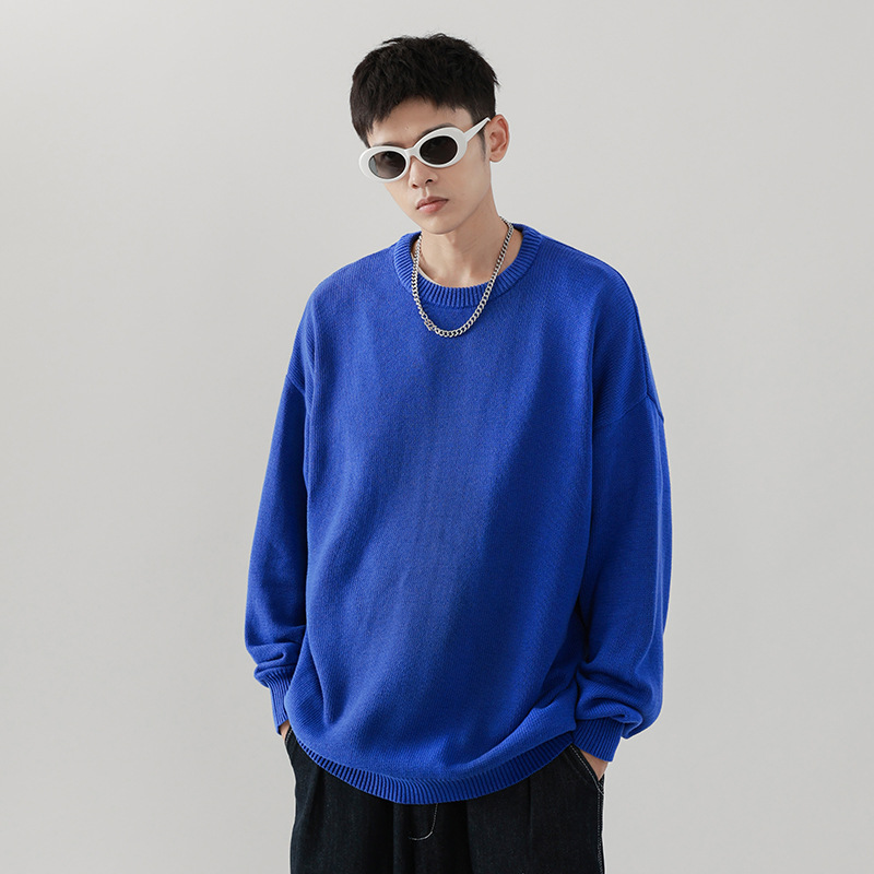 高品質丸首ニット純色長袖プルオーバー落肩セーター (二次開発可能)