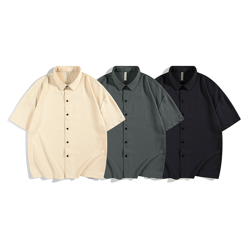 メーカー直販夏の新型ゆるい氷感弾力香港風INSシャツ男性カジュアルファッション上着