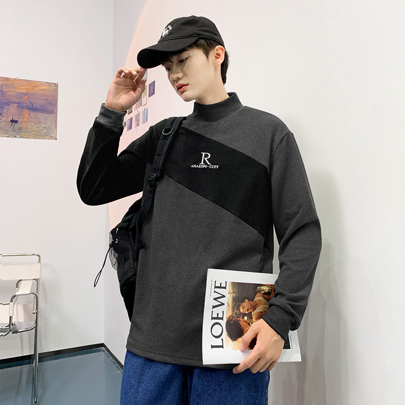 半高襟徳絨毯の長袖の頭を厚くして、色の刺繍の上着にぶつかります。