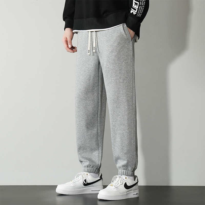 ワッフルガードル男性ベルベット保温ファッションラベリングスポーツパンツゆるい足グレーカジュアルパンツ