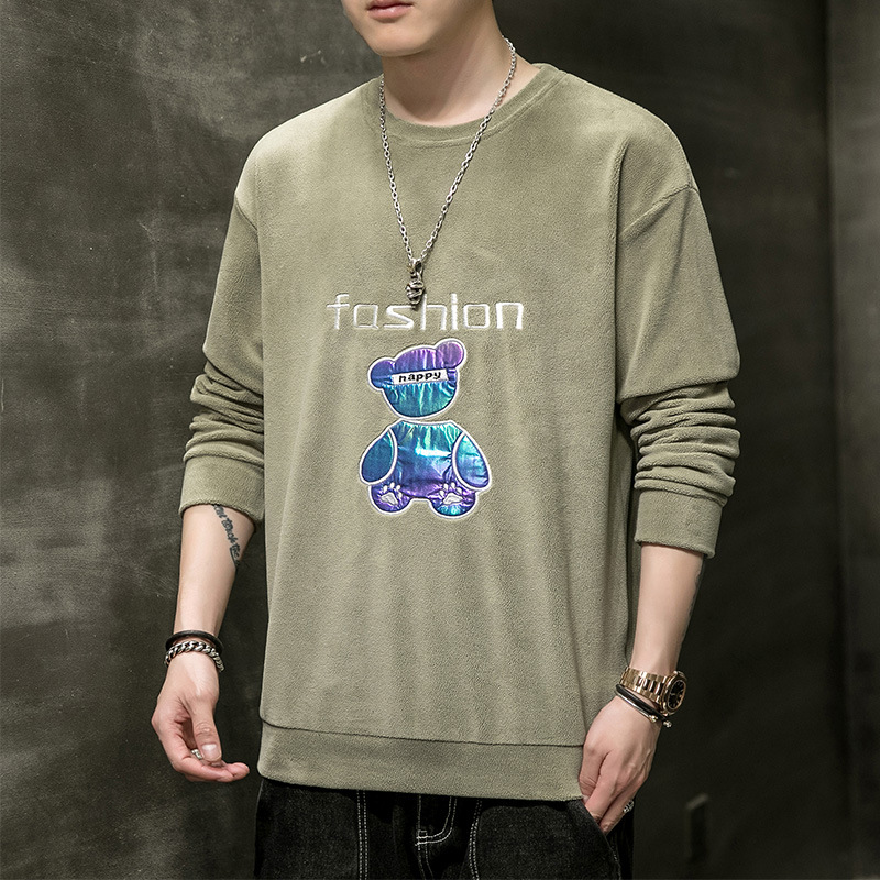 半高襟徳絨毛衛衣厚手純色プリント長袖tシャツ (二次開発可能)