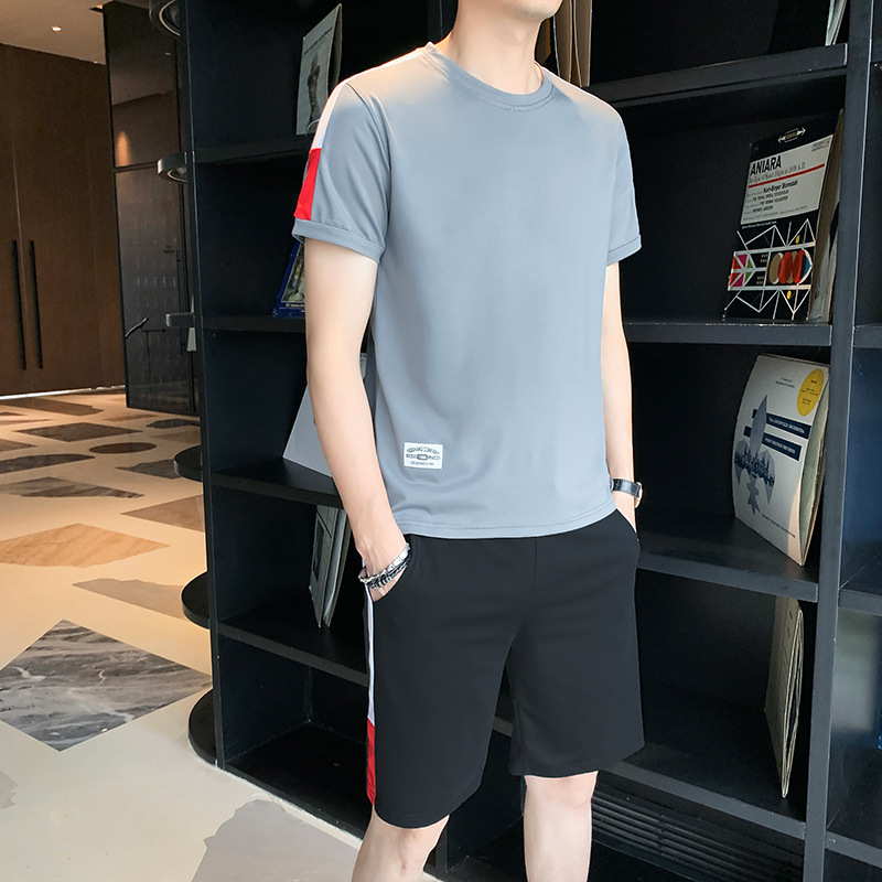 夏新品メンズ半袖カジュアルスポーツスーツアウトドアランニングゆるい2ピース