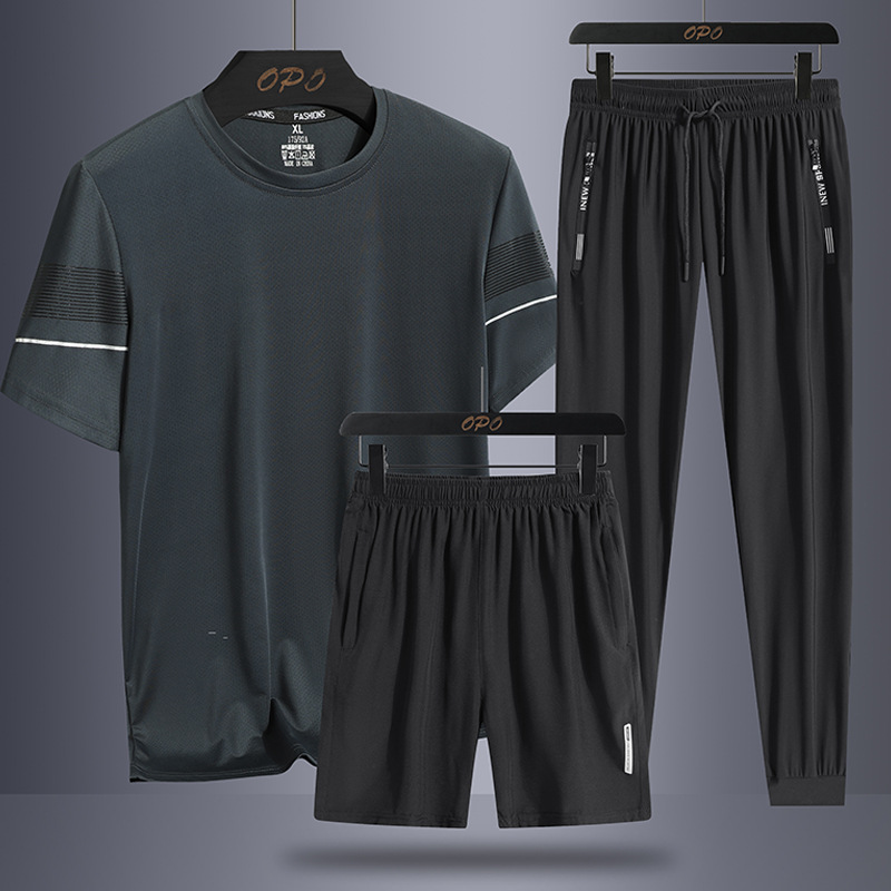 氷糸ファッションスーツ夏の新型男性スポーツスーツ3点セットの薄い通気性男性服
